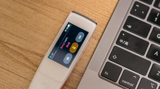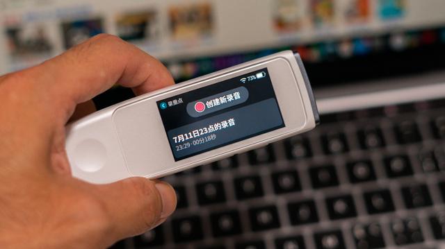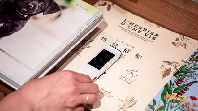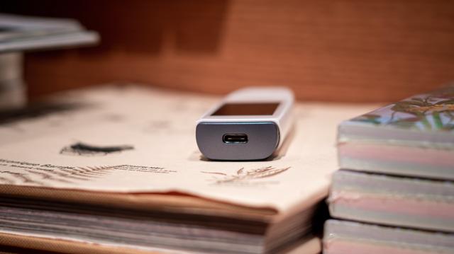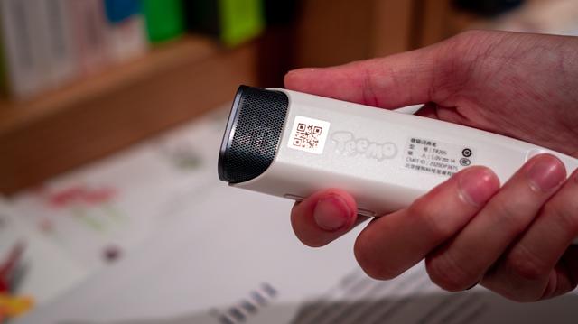 糖猫词典笔身重56.5克,差不多是一颗鸡蛋的重量。大小比手掌要长一些,可以轻松握持和使用,小小的体积放在兜里和笔袋里都没什么负担。