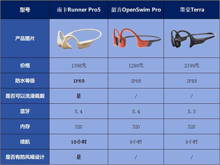 这三款耳机就是:南卡RunnerPro5、韶音OpenSwim pro和墨觉 Terra。三款游泳级别的骨传导耳机,那么接下来就让我们来看看这三款耳机到底有什么不同吧!