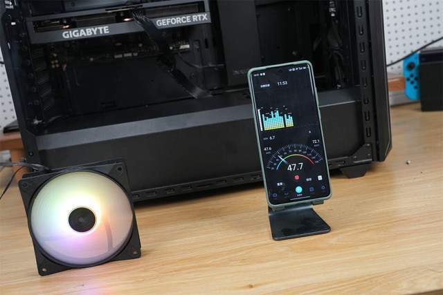 再来看看实机噪音测试,距离风扇20公分,连接电脑,开启拷机状态下单个风扇可以做到47.7分贝,当然因为测试环境的问题,这个噪音仅供参考。当然如果你机箱安装多个风扇以及机箱具有静音设计都可能导致噪音测试结果的不同,但总的来说Light Wings LX 120mm PWM high-speed 风扇的噪音控制能力还是屈指可数的。