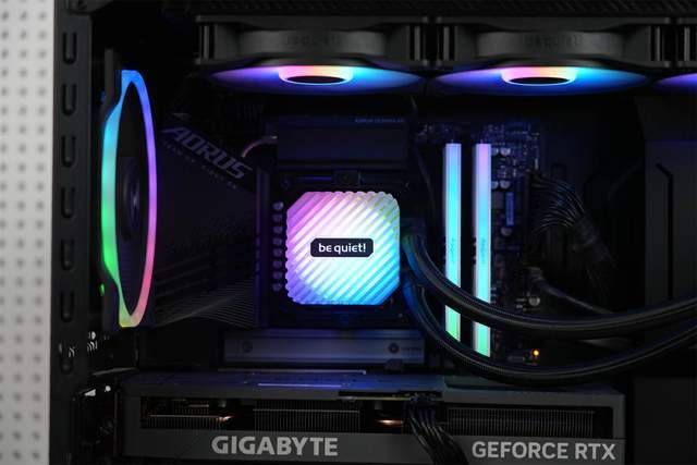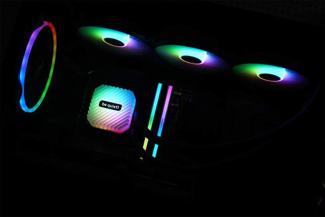 Light Loop搭配Light Wings LX 120mm PWM高速风扇,这款风扇作为be quiet!首款发光扇叶设计,轮毂内置16颗LED灯,其精心设计的9片气流优化扇叶,经过精密计算与反复测试,旨在最大化空气流动效率的同时,有效减少因湍流而产生的噪音,实现高效散热同时点亮视觉盛宴。