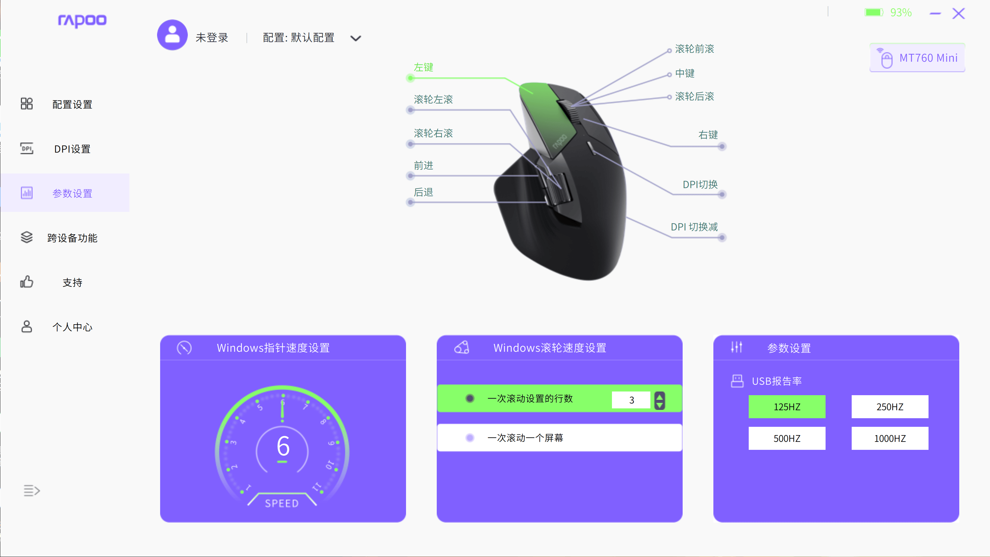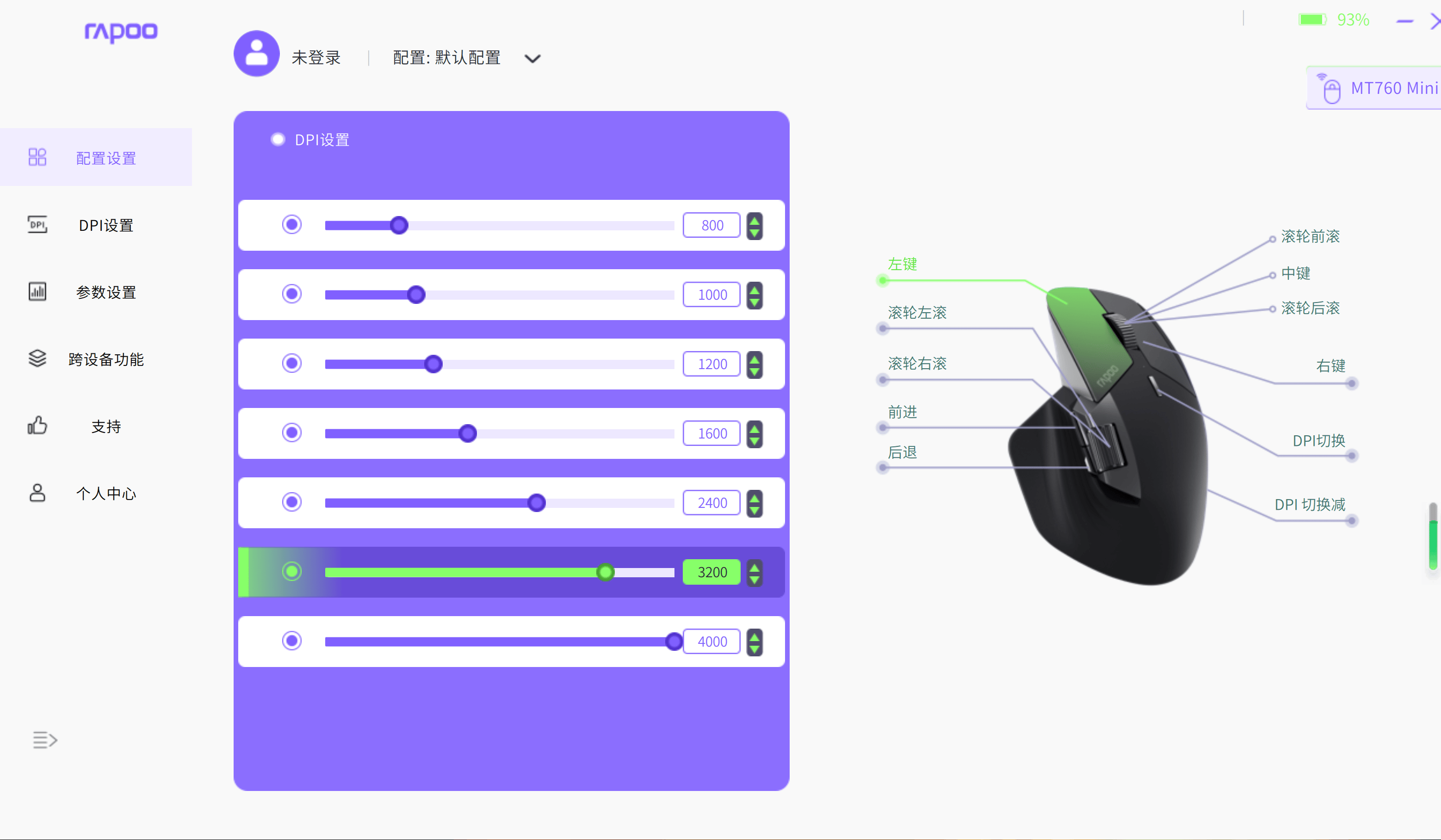 为了方便不同消费者的使用需求,雷柏MT760系列鼠标还支持电脑端的应用程序,在应用程序中可以对鼠标的灵敏度参数和滚轮的滑动频率等进行个性化设置,这样可以根据自己的使用习惯,打造专属的鼠标了。