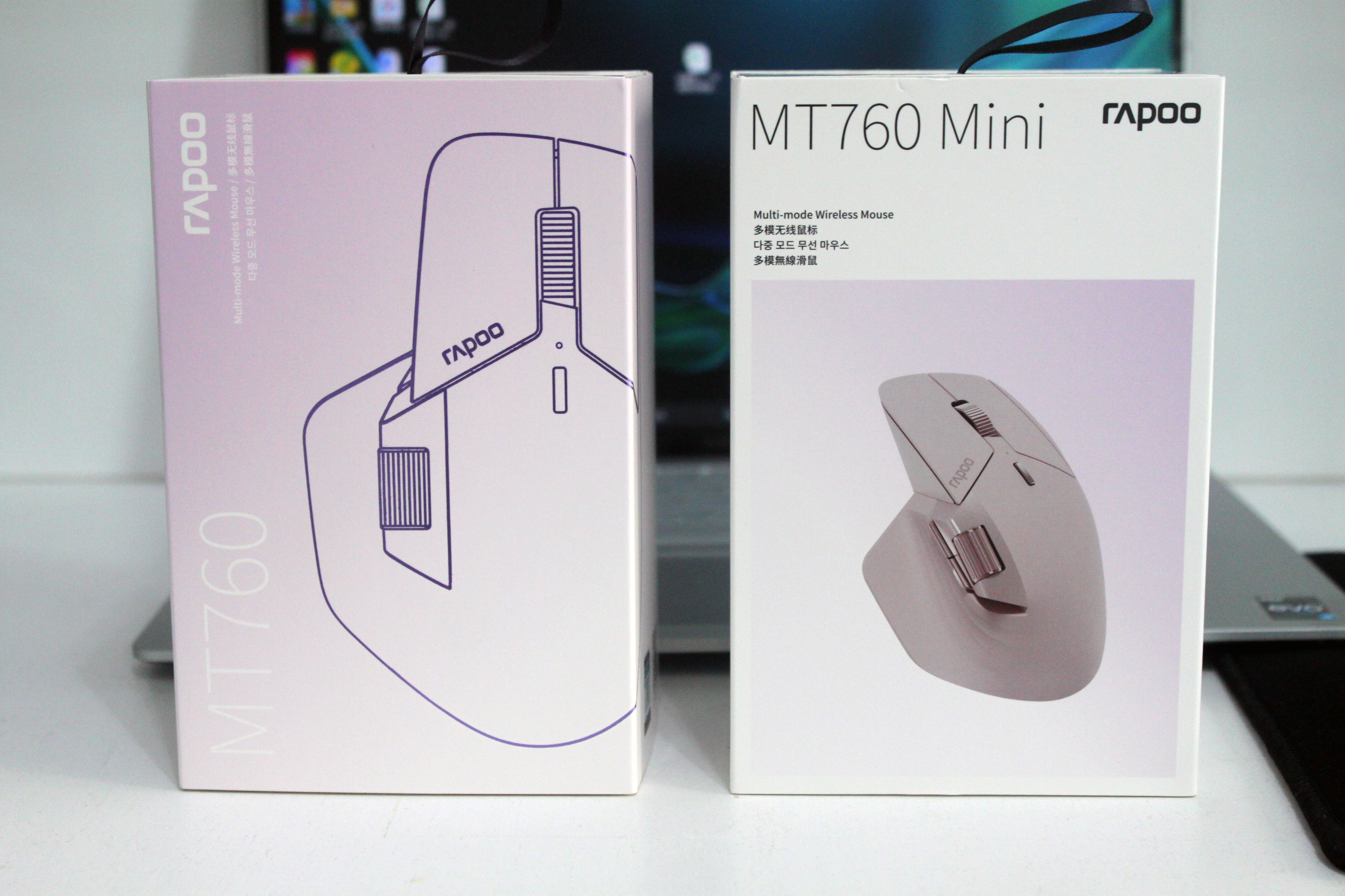 雷柏MT760系列鼠标有两个版本,一个MT760和一个MT760mini版本,mini版本主要是针对手型小的用户设计的,这两款鼠标都采用了纸质的包装盒, 一个展示了产品的示意图,一个展示了产品的实物图,也算是解开了MT760系列鼠标的面纱。