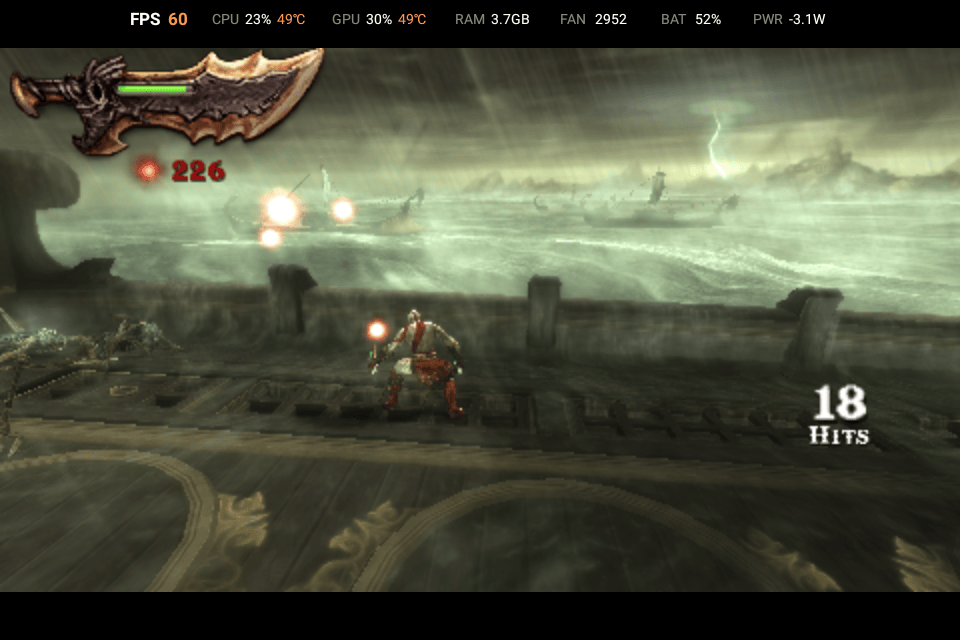 火力全开,PSP战神整机功耗在3.1-3.7W,要知道这可是三倍分辨率玩PSP战神,帧率也可以达到60帧,AYANEO Pocket MICRO的2600mAh电池也能保障3小时以上的游戏。