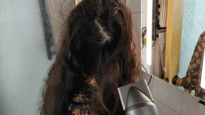 体验方面,初扉MIX高速吹风机的一档低风速效果,在动图展示中可以看到低风的力度还是挺强的,当然这样风干的速度更快一些。