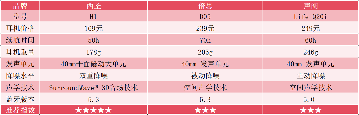 个人来说的话,我还是最比较推荐西圣h1这一款的,因为它的音质和降噪能力双双在线,耳机的兼容性好,主要是性价比特别高,作为平价轻奢耳机代表品牌,不仅追求把音质做到极致,而且同时还兼顾了舒适度和外观,很值得入手!