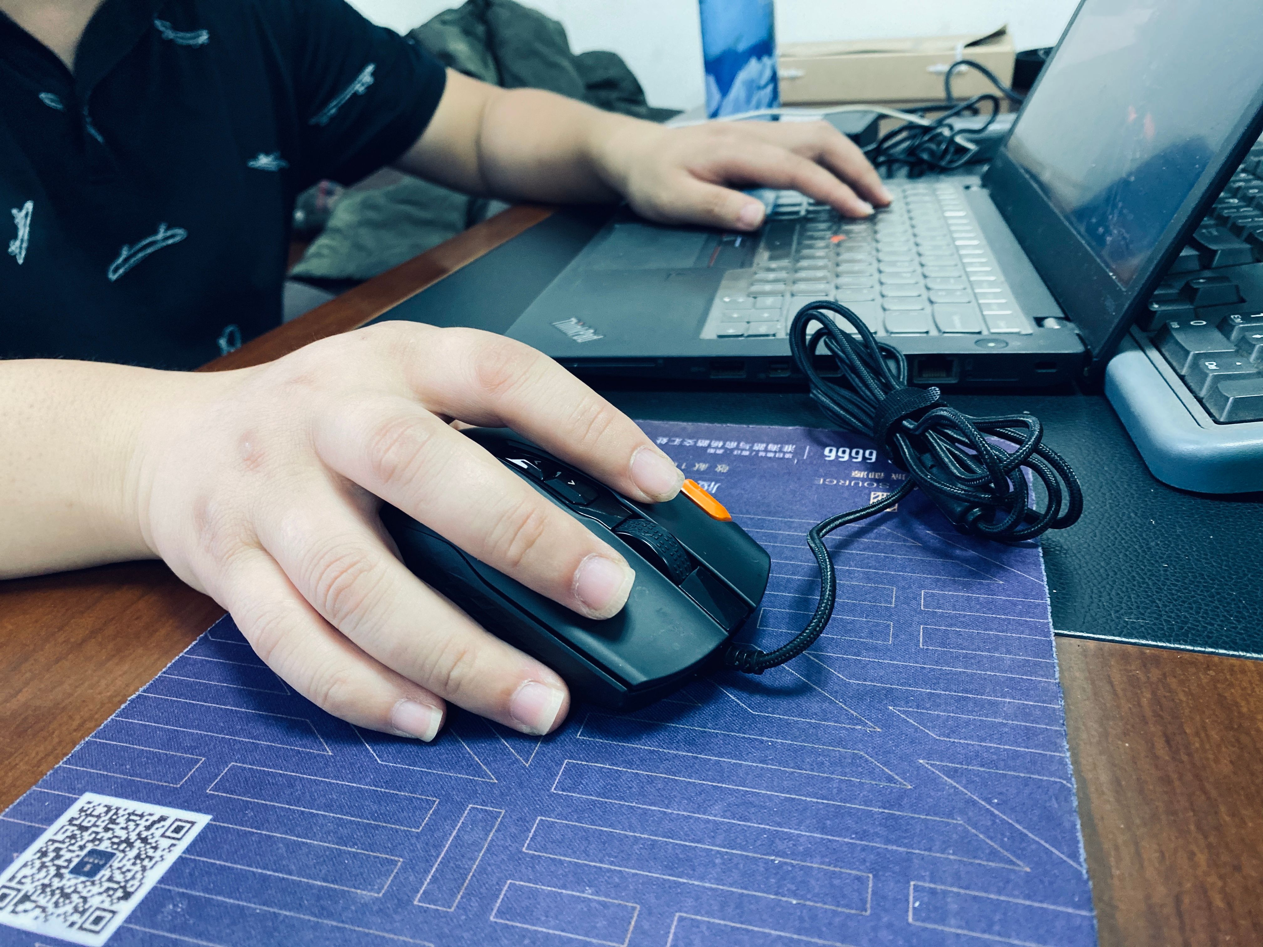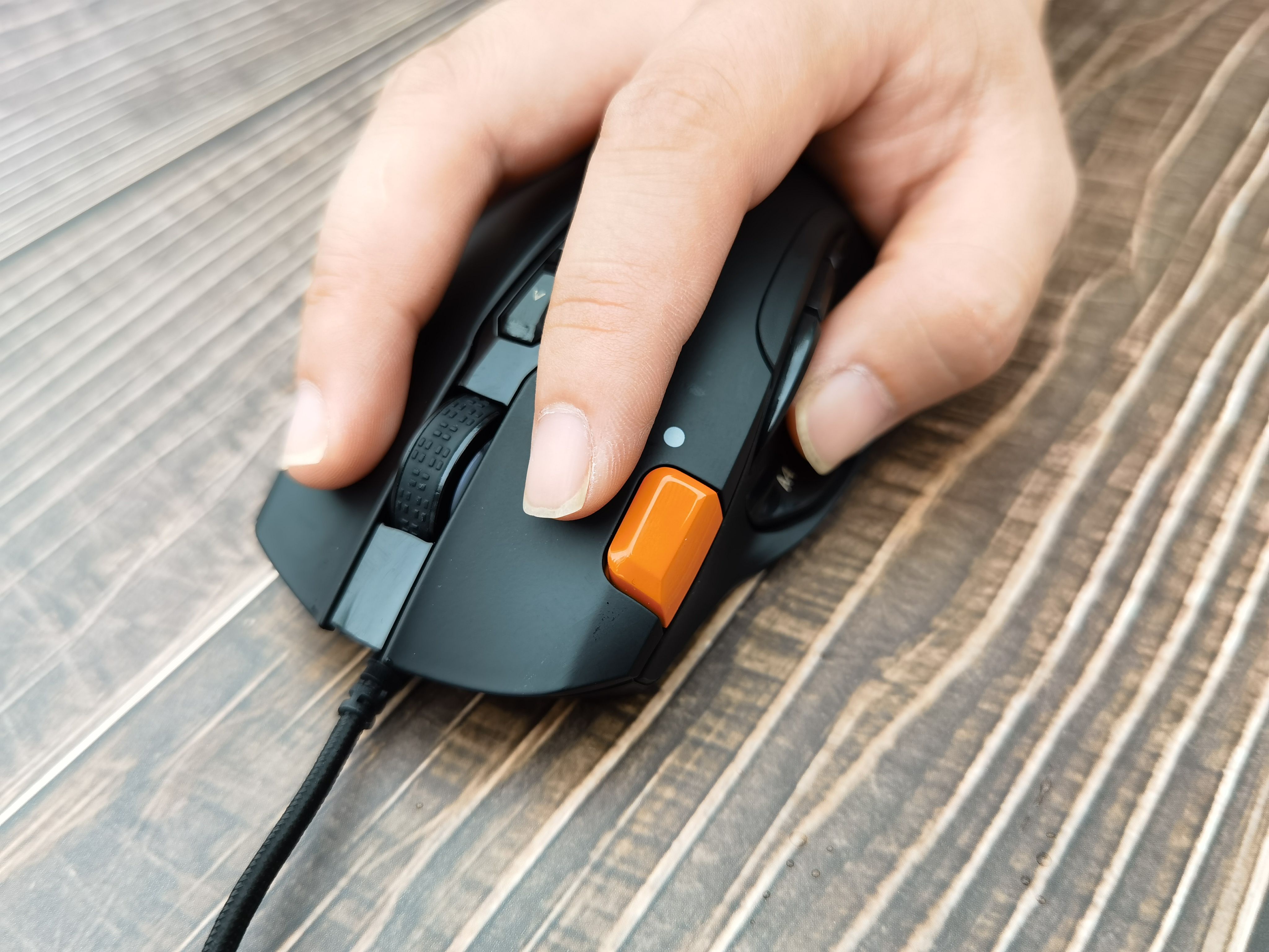 笔者手握住黑爵,手感很是不错,试了一下,按键虽多,但是操作起来很是便捷,按键的灵敏度也是很高,毕竟黑爵的配备的可是旗舰原相PMW3325芯片,可以满足4K分辨率,同时分辨率5000 DPI、USB刷新频率1000HZ、加速度20G,可不是哪款游戏鼠标都具备的。