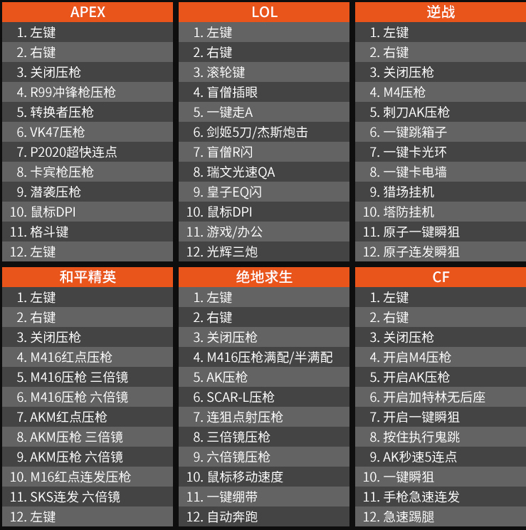 这是现在黑爵已有的游戏12键设置,笔者先进行LOL按键宏设置,进行鼠标测试。
