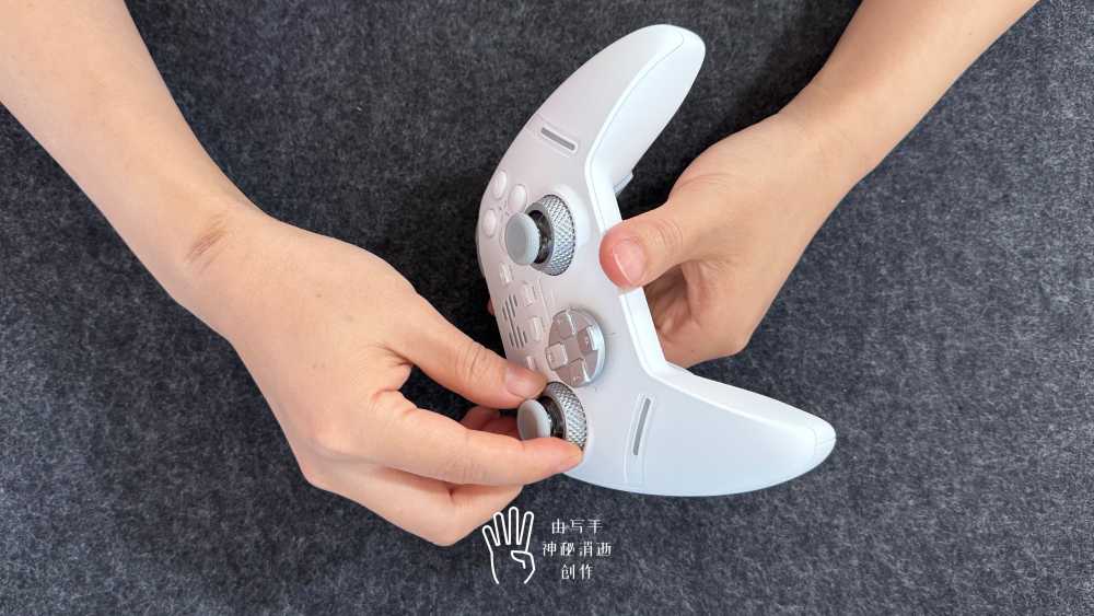 ▲同时为了方便玩家在激烈游戏时按的更准抓的更稳,LT/RT、LB/RB键、十字键、背键以及摇杆帽表面设置有握把同款激光防滑纹理。