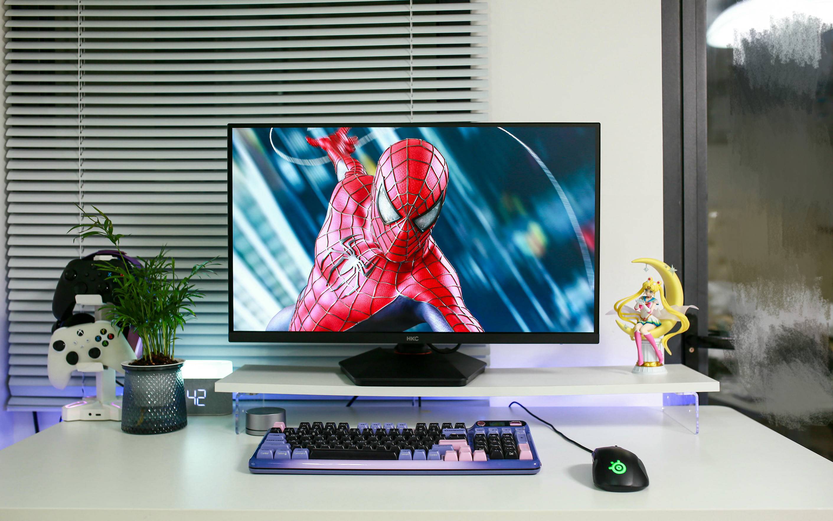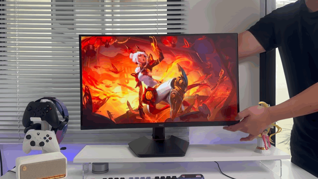 相比传统的 V 型底座,HKC G27H7Pro 采用的六边形小巧底座不仅更加稳固,还大幅缩小了占地面积,为桌面留出了更多可用空间。适合游戏玩家摆放键盘和鼠标,减少了桌面拥挤感。