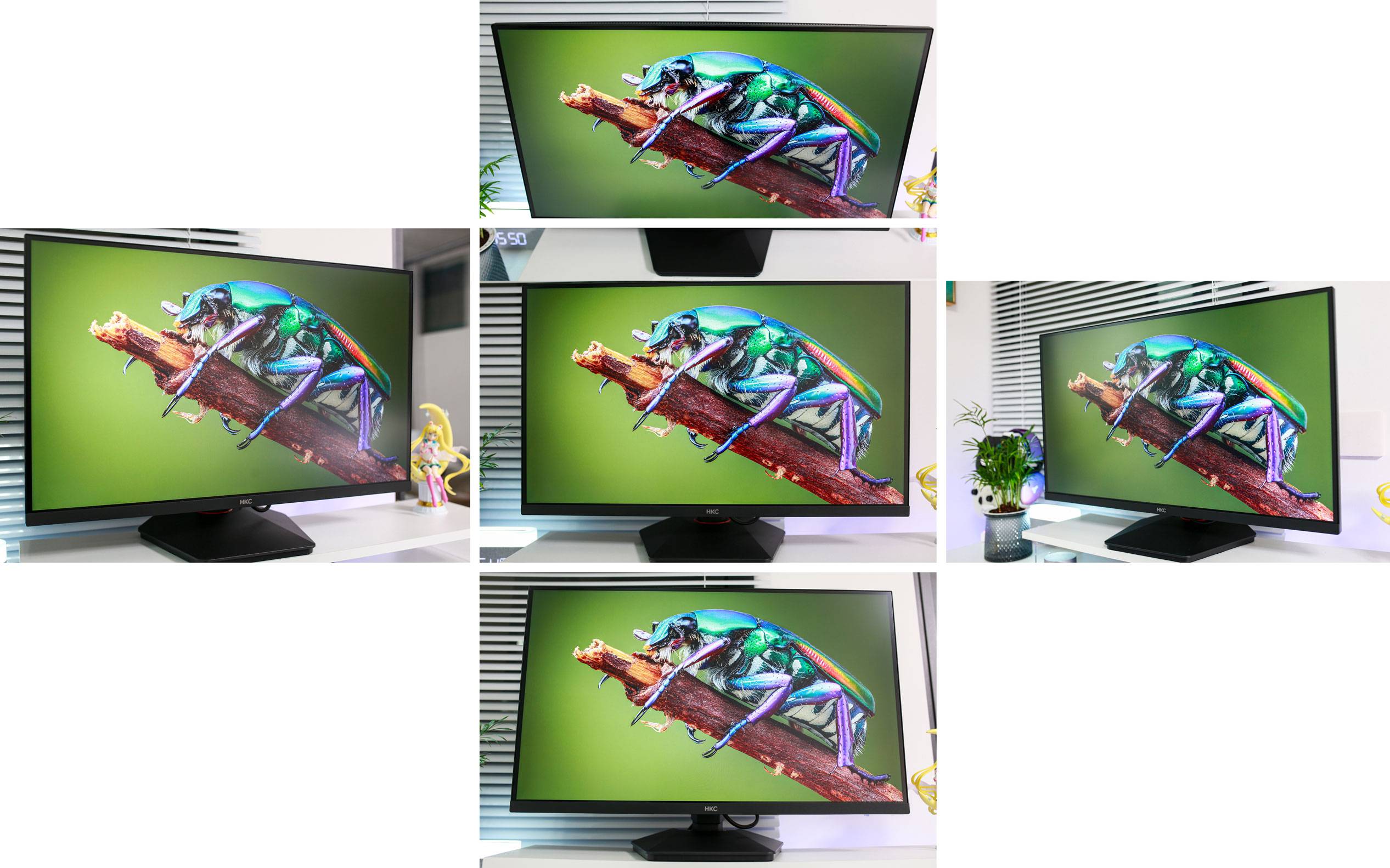 HKC G27H7Pro可视视角表现也不错,从四个不同方向拍摄,画面的色彩基本无失真和偏差,确保了在各种角度下都能享受到出色的视觉体验。
