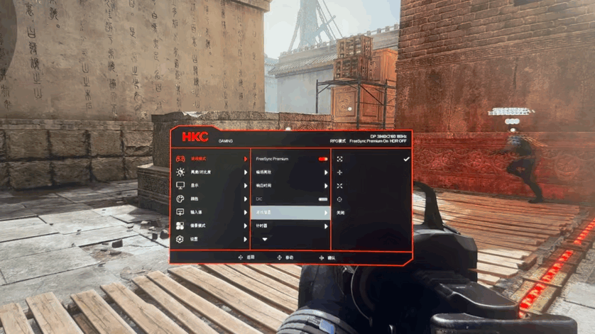 而在 FPS 游戏中,通过显示器背部的五向摇杆按钮,快速切换至 FHD 320Hz 超高刷新率模式,无需退出游戏或切换桌面。