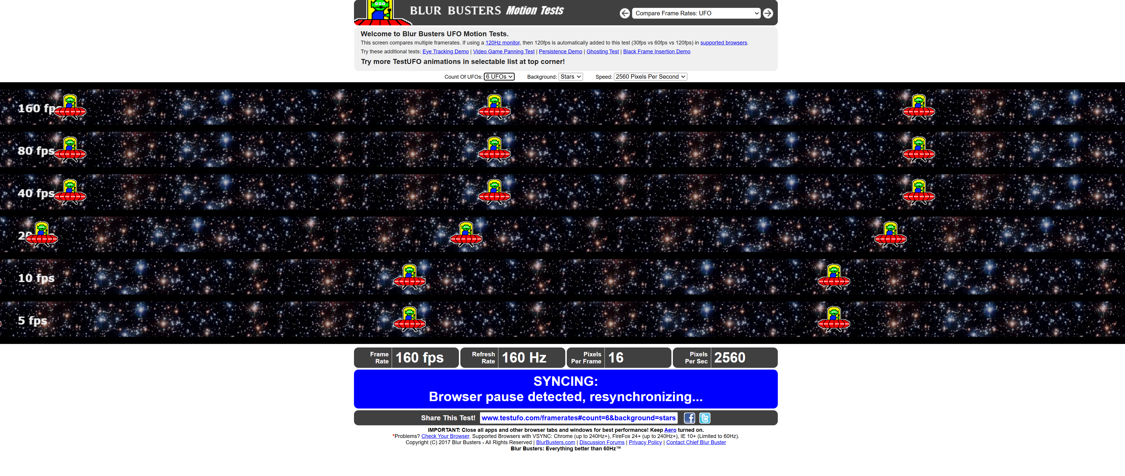 在用UFO进行简单的测试,原生160Hz 刷新率一点也不虚: