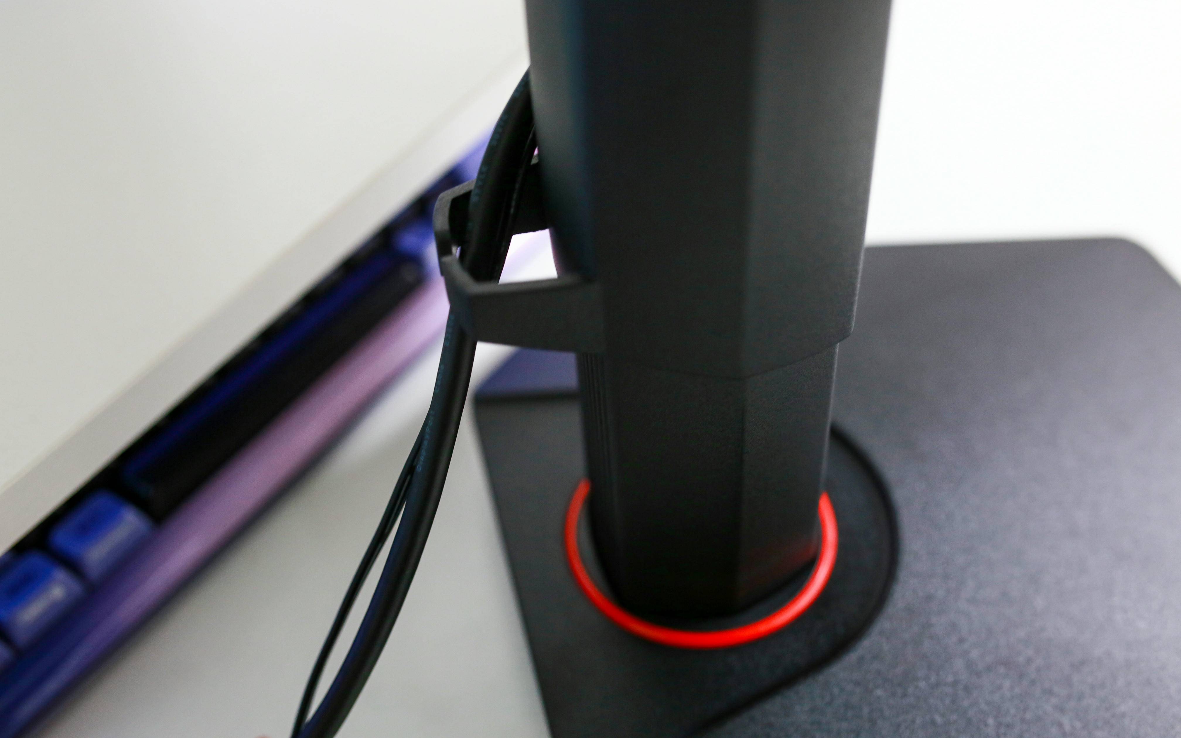 HKC G27H7Pro 显示器的底座下方巧妙设计了隐藏式理线槽,开孔较大,方便整理和固定各种线材。能有效隐藏杂乱的电源线、视频线和外设线材,使桌面更加整洁有序。