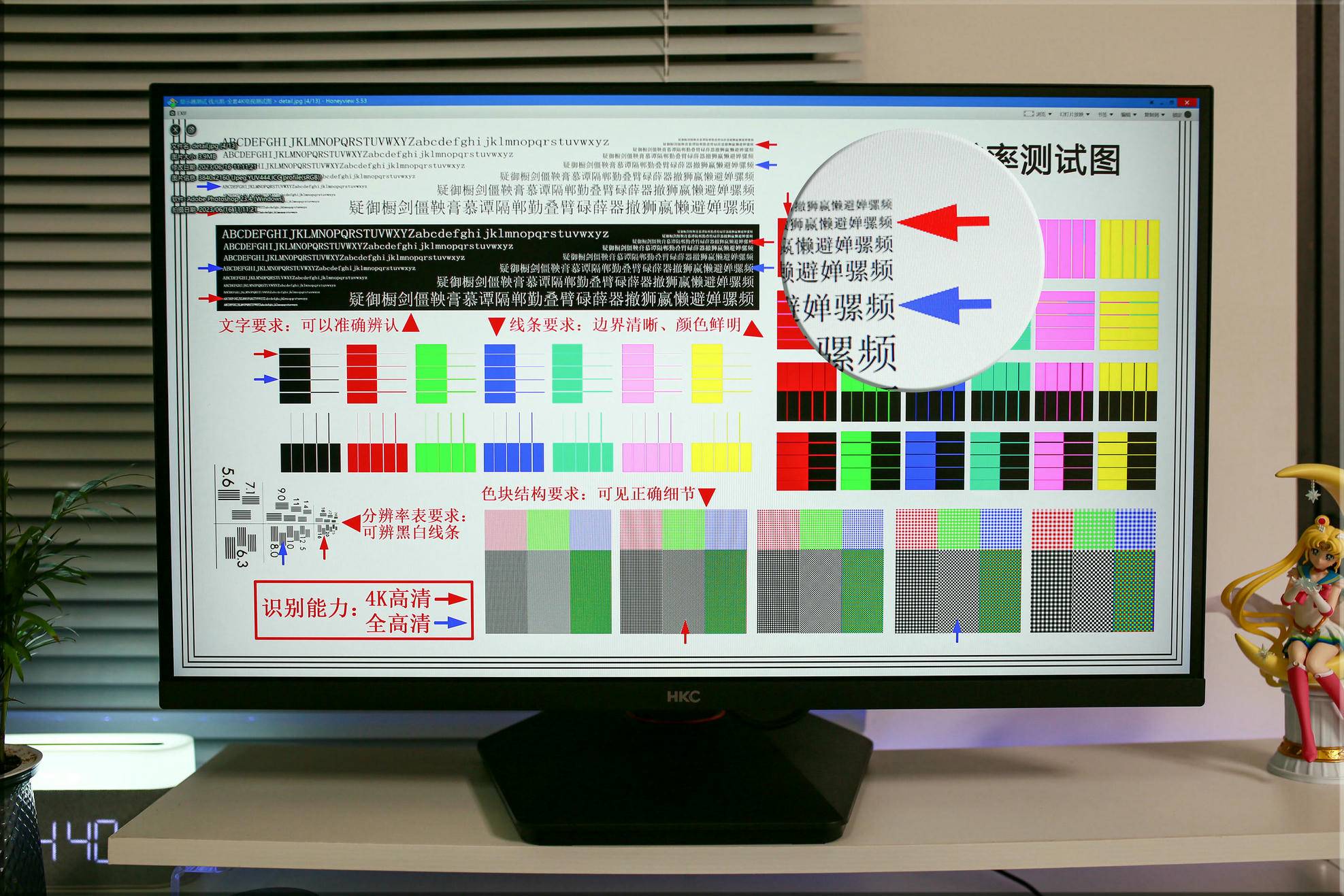 对我而言,编辑和处理文档是日常工作的核心,而 HKC G27H7Pro 在这方面表现出色。4K 分辨率让文字和图像细节更加清晰,即使长时间使用也不易眼疲劳。通过 4K 测试图可直观看到其卓越显示效果,即使是红色箭头标注的微小 4K 文字也清晰可见,无模糊或失真。这种高精度显示显著提升了编辑复杂文档时的舒适度和工作效率。