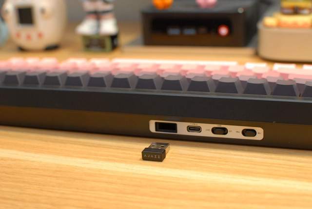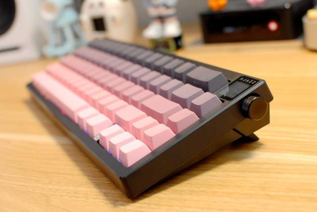个人认为黑爵AK650机械键盘的一大亮点便是其0.85寸的高亮耐磨TFT彩屏。这块屏幕不仅可以显示时间、连接模式、电量等基本信息。