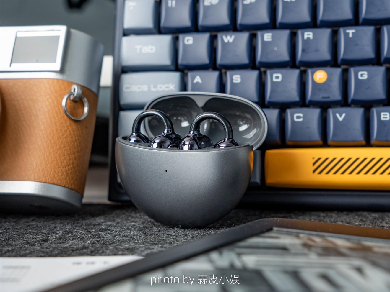 充电仓内置磁铁,采用磁吸开合盖设计,左右两个充电槽采用交叉堆叠设计,在保证耳机能够与充电弹针精准吸附的同时,大幅减少了充电仓体积。耳夹U形桥内嵌高性能镍钛合金,外部包裹高弹零度硅胶,不仅抗老化、防汗抗脏污,而且佩戴更加贴合和耐用。