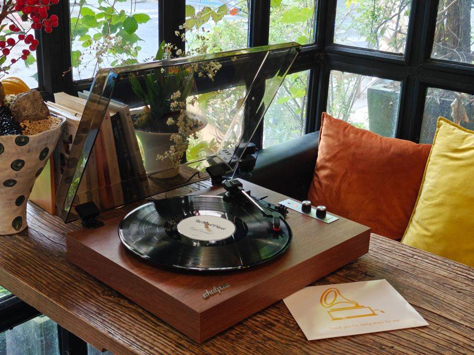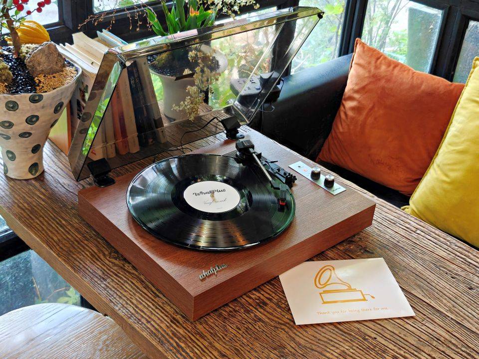 看到WhatPlus问加From1900黑胶唱片机那一刻,就被它复古的外观所吸引,胡桃木配色的底座搭配透明的外壳瞬间让我们重回1900年代。随机还附送了蔡琴老师《被遗忘的时光》黑胶唱片,到手即可聆听天籁之声。