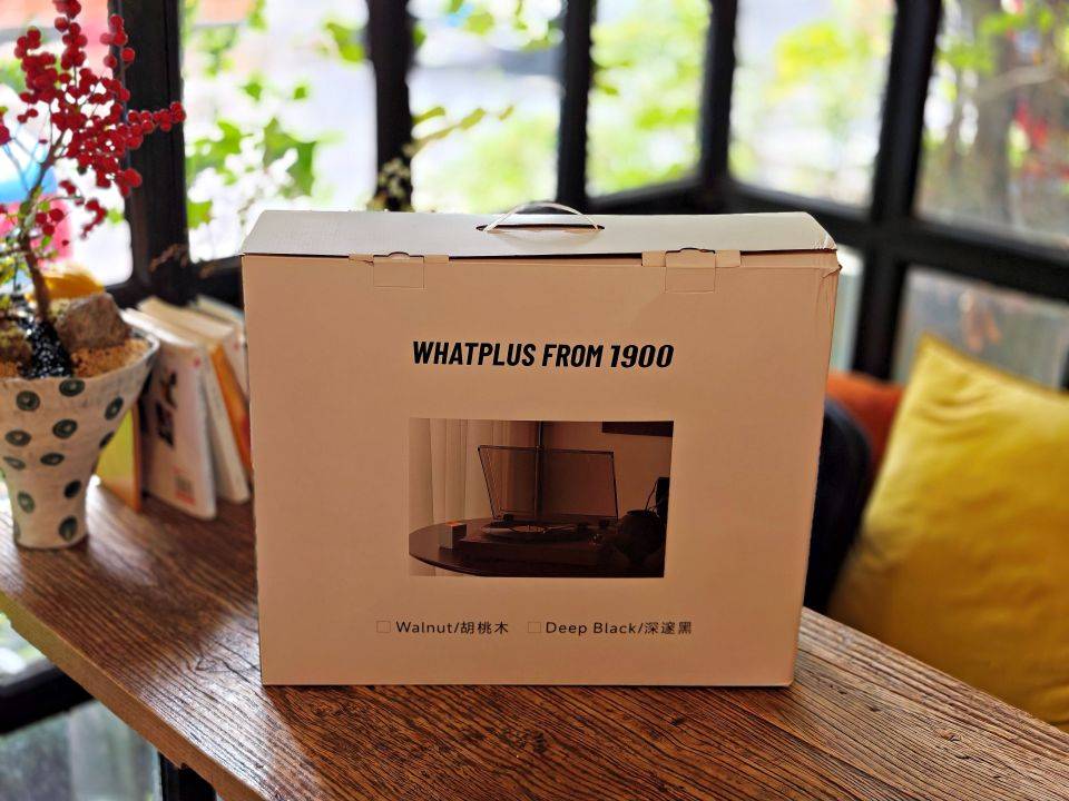WhatPlus问加From1900黑胶唱片机采用白色纸盒包装,正面印有品牌、型号以及唱片机的真实图片写真,整个包装非常简约高档,无论自用还是送礼都相当OK。唱片机总共有两种配色,分别是胡桃木、深邃黑,我选择了更加复古有型的胡桃木,五百多元的售价相当超值。