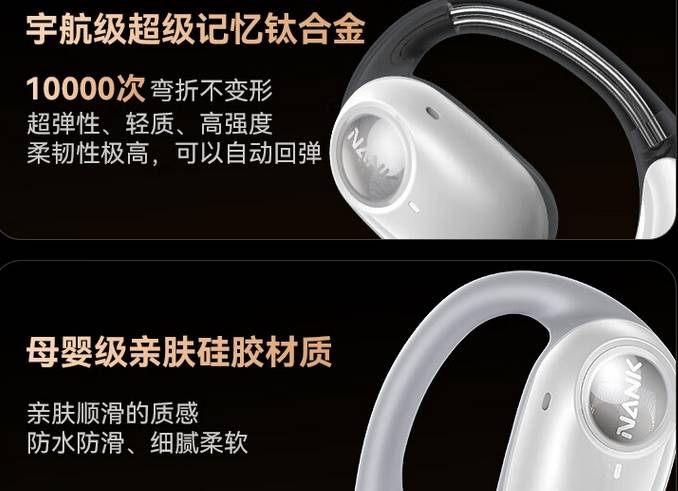 开放式耳机和封闭式耳机哪个好?耳机表面覆盖了亲肤舒适的液态硅胶材质,并采用了柔韧的镍钛合金丝质记忆耳挂,弹性高可以贴合不同的耳形,还可以根据个人喜好进行松紧调节。