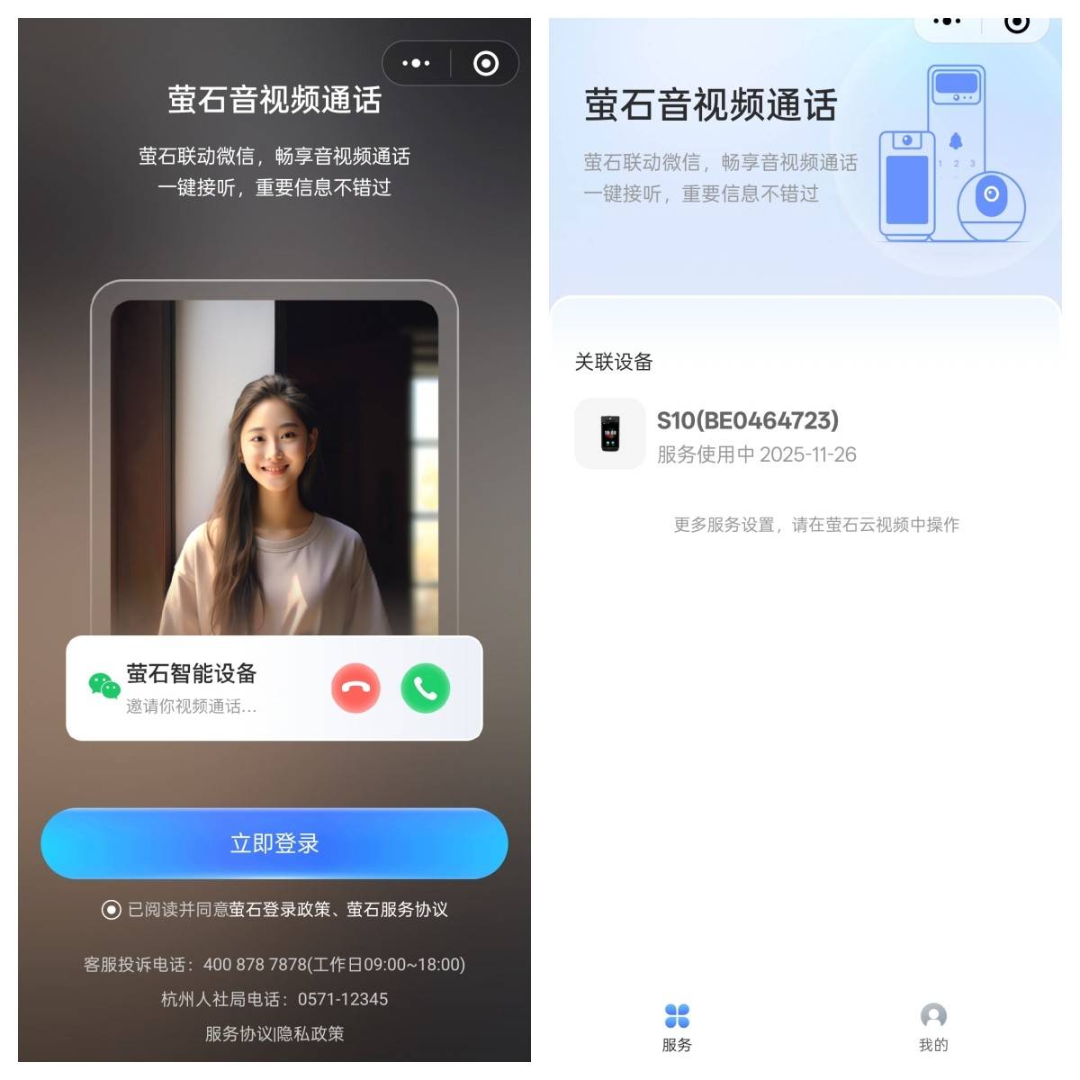 值得一提的是,升级后的萤石S10视频通话摄像机支持与微信联动,无需安装额外APP,即可通过微信畅享音视频通话,这确实令人惊喜。