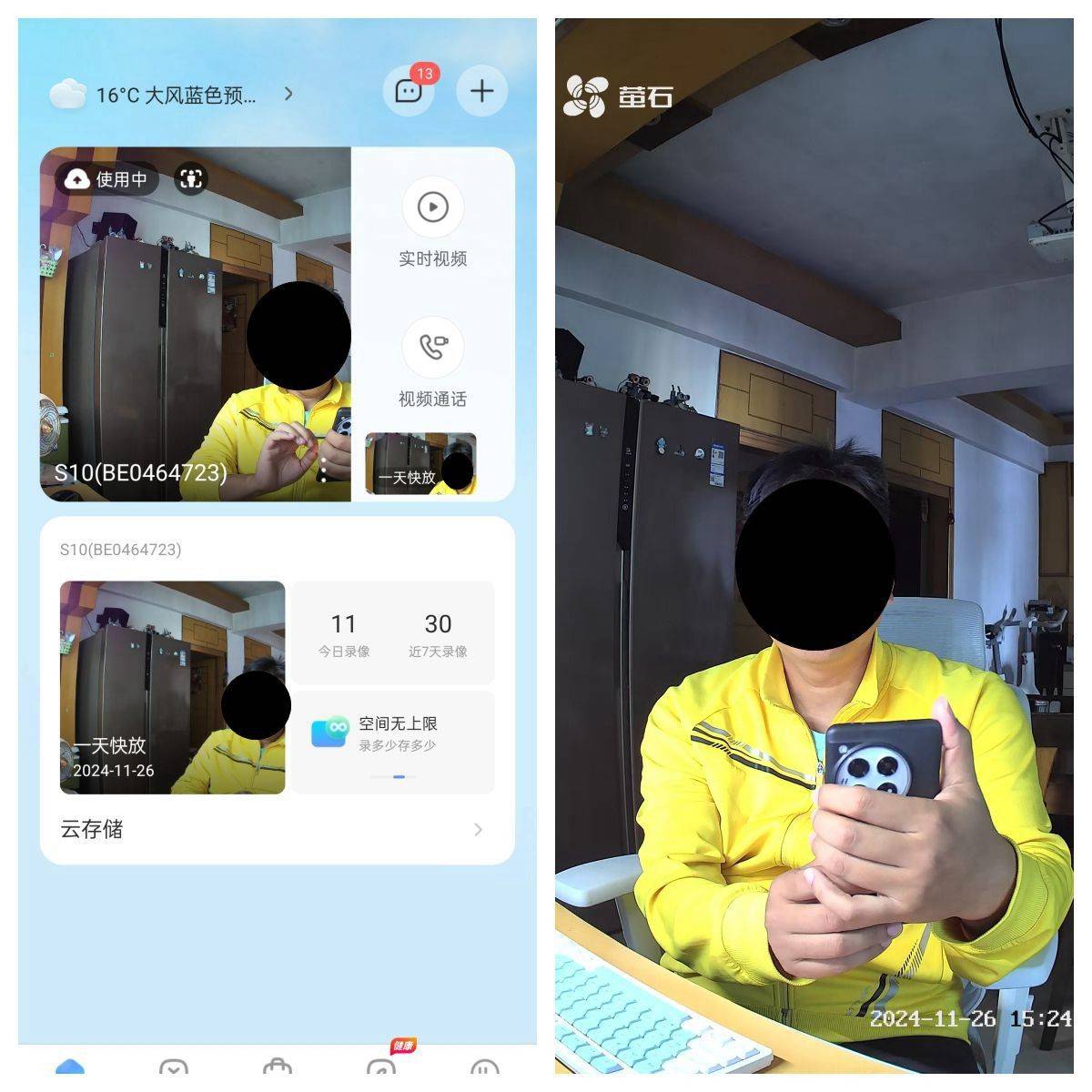 在画质方面,萤石S10视频通话摄像机搭载了400W极清像素的F1.6大光圈镜头,进光量倍增,使得画面显色饱满,画质更加清晰细腻。无论是日常的视频通话,还是记录家庭中的温馨瞬间,都能呈现出令人满意的视觉效果。