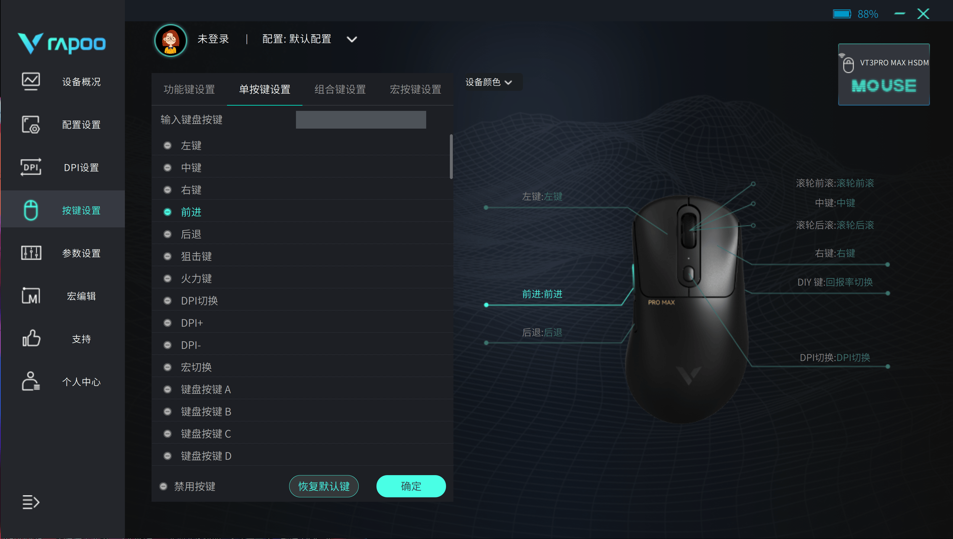 雷柏这款鼠标主打游戏体验,为了习惯自己游戏中的操作习惯,在应用程序中可以对鼠标的单键进行设置,让游戏操作更加得心应手。