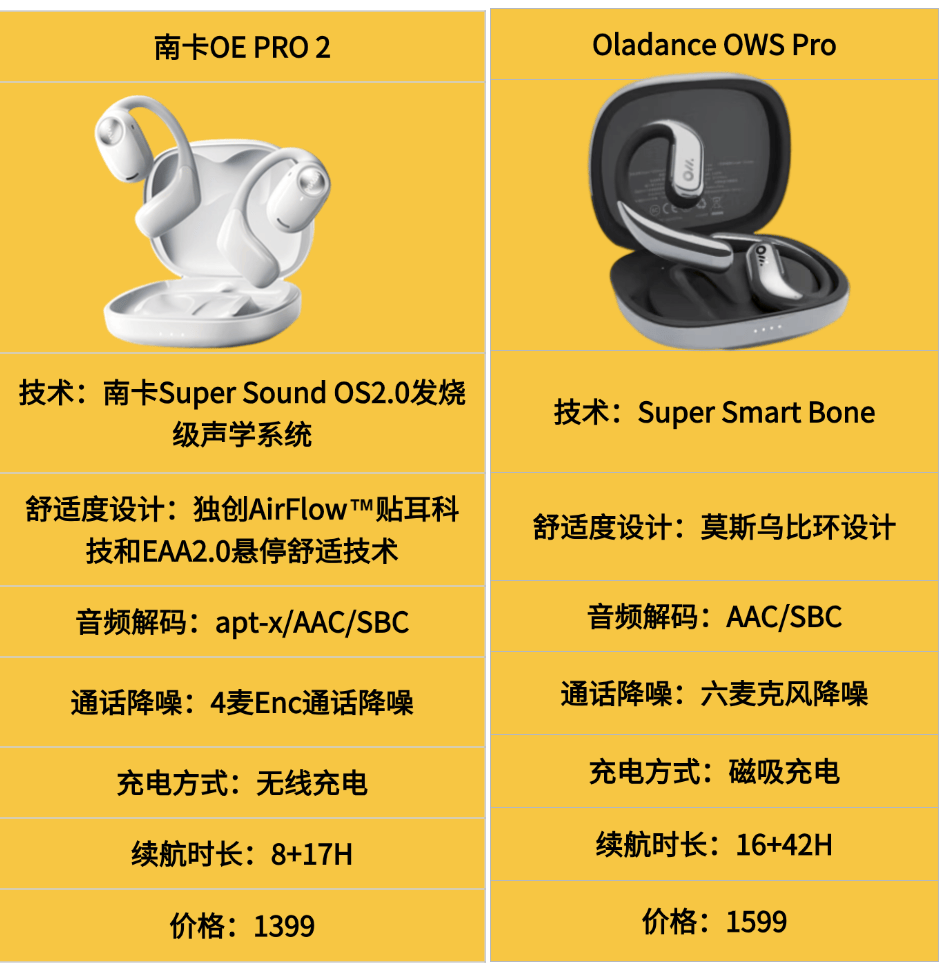 在当前耳机市场的多样化竞争中,开放式耳机以其独特的佩戴体验和卓越的音频性能,逐渐成为消费者选择的新宠。为了帮助大家在众多产品中做出明智的选择,我们特别策划了这场针对南卡 OE PRO 2 和 Oladance OWS Pro 两款热门开放式耳机的全方位横向评测。