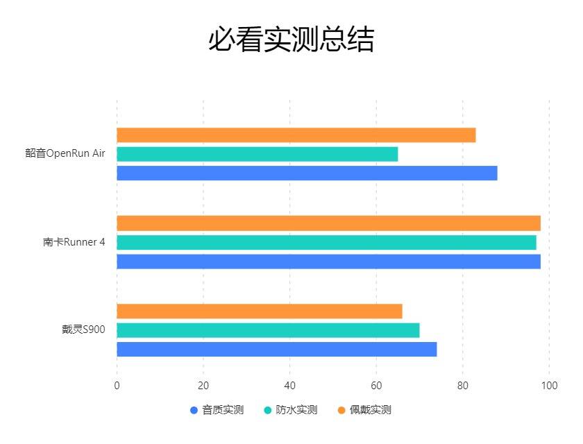综合考虑,南卡Runner 4在防水性能、音质表现和佩戴舒适度上均表现出色,是值得推荐的选择。韶音OpenRun Air在音质和佩戴舒适度上表现不错,但防水性能稍弱。戴灵S900虽然价格较低,但是在各方面的表现都不算及格,尤其是在防水性能和音质上,不太推荐。而对于经常运动的朋友来说,选择骨传导耳机时应重视音质、防水和佩戴舒适度,南卡Runner 4无疑是一个值得考虑的选项。