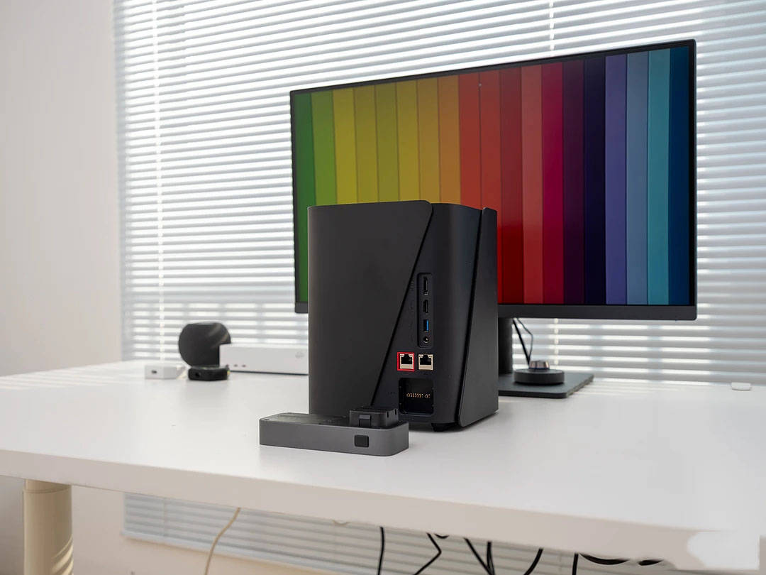 在极空间的新品发布会的时候我就一直对这款产品关注度非常的高,z423和我们往常所接触到的家用nas不太一样,他有着堪称野兽级别的硬件配置,锐龙7 5825U 8核心16线程,万兆网口,4个3.5寸硬盘接口(向下兼容2.5寸sata盘),4个m.2固态硬盘接口,甚至可以用固态盘来组raid5来感受狂暴的存储性能。
