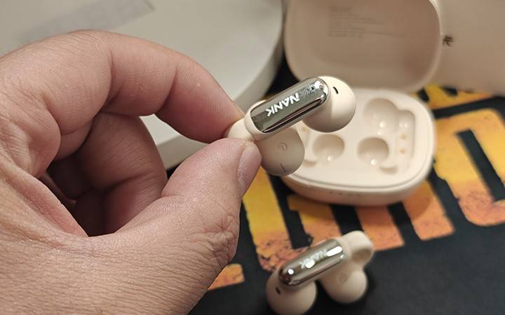 南卡CliP Pro耳机在扬声器和耳撑部分中间连接处,采用了亮银色金属材质,上面还有品牌LOGO,除了增加耳机的金属质感,也增加了耳机的辨识度。这样的设计还是非常符合我们现在年轻人的审美。