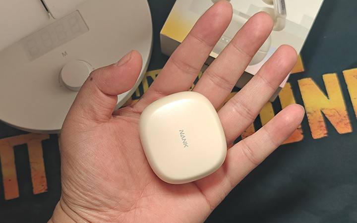 整个充电盒非常小巧轻便,重量仅39.6g,放在掌心,可以看到只有掌心一半大小,装在衣兜里也不会占用很大空间,携带非常的方便。充电盒正面中间印着“NANK”的标识,提升它的品牌形象。