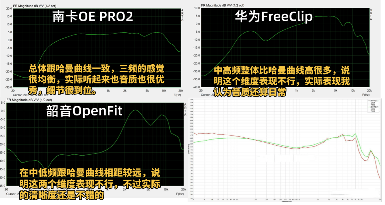 韶音OpenFit在低频表现上给人留下深刻印象,但中高频表现有待提升,佩戴舒适度和漏音控制也略逊一筹。如果你偏好重低音的音乐风格,可以考虑韶音OpenFit。