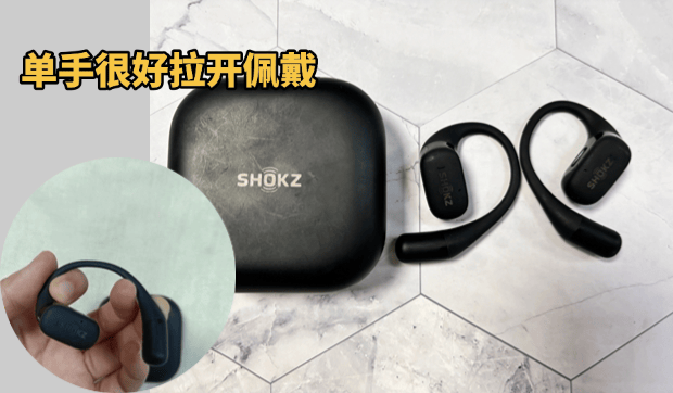 佩戴感受:耳挂设计贴合耳型,材质舒适,佩戴感觉良好。耳挂内部采用镍钛合金丝,单边的重量5.6g,在外部包裹液态硅胶,可以有摩擦力,但是压耳感也比较明显。