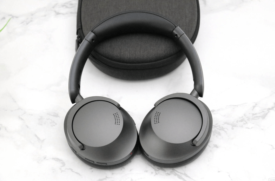 佩戴舒适度:耳罩部分采用柔软材质,表面光滑无褶皱,贴合耳部轮廓,头梁部分带有伸缩设计,佩戴轻盈舒适不压头。耳机外壳采用再生塑料材质,质感上可能不如一些采用金属或更高端塑料材质的耳机。