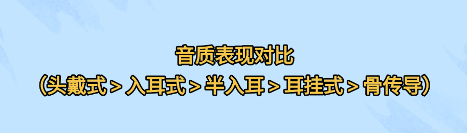 音质表现对比:(头戴式>入耳式>半入耳>耳挂式>骨传导)