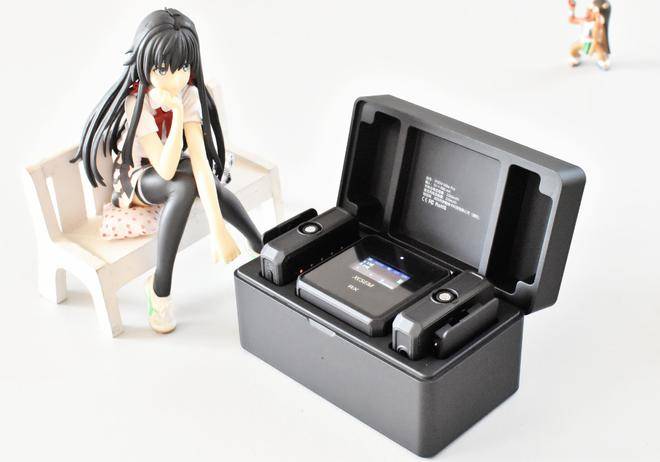 这款优篮子AM18无线领夹麦克风一上手的分量感还是蛮足的,采用的是一拖二的设计,单个麦克风的重量达到了23g,不算太重也不算太轻,不过值得一提的是双麦均配备了本地录音的功能,而且自带了8G的存储内存,能够实现离线录制,在不断线的情况下可以保障无损格式录制14个小时,这点设计是比较不错的。此外接收器部分是配备了触摸屏的设计,可以通过点击、滑动实现不同的功能。