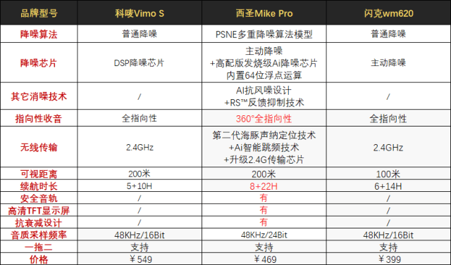 西圣Mike Pro搭载了行业首创的PSNE四重降噪算法模型,通过“预处理、分割、降噪、提升”四个关键步骤,有效降低环境噪音对声音信号的干扰。此外,它还配备了发烧级的Ai降噪芯片,结合64位浮点数计算的DSP,远超市场普遍使用的16位或24位定点数计算,确保音频信号处理的精度更高。西圣Mike Pro还具备AI抗风噪设计,即使在强风环境中,也能智能抵消风噪,无需繁琐操作即可保持录音的清晰度和稳定性。科唛Vimo S虽然在安静环境中表现不错,但在复杂噪音环境下的降噪效果稍逊一筹,特别是在处理高噪音强度和强风环境时,表现不够理想。闪克WM620在降噪方面虽然也有一定的亮点,但在复杂噪音环境下的表现还是比较不理想,底噪问题较为明显。