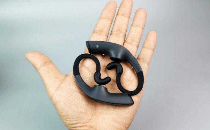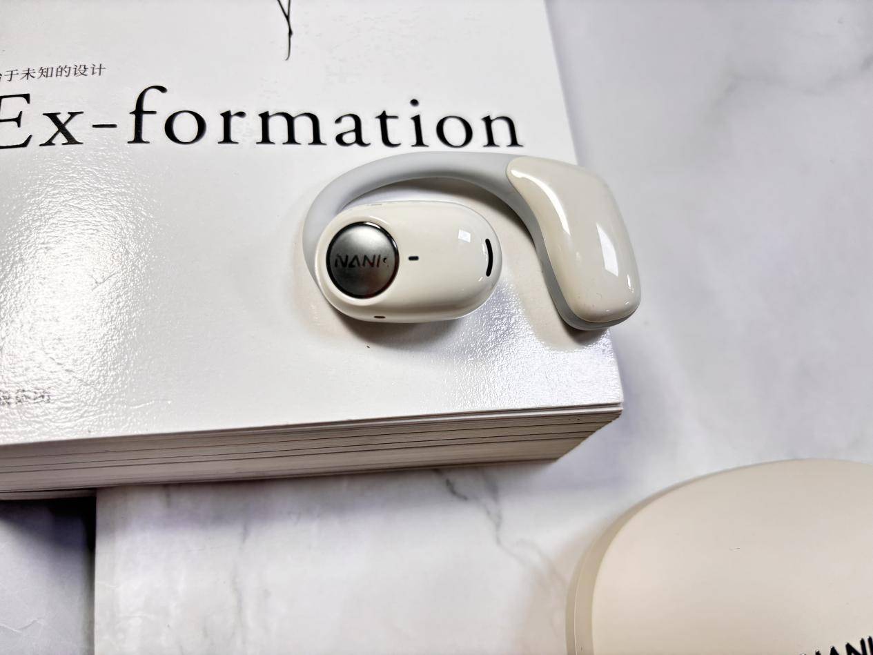 借鉴骨传导造型,采用耳挂 + 脑后挂结构,耳机不进入耳道,开放式佩戴舒适稳定,但长时间佩戴可能会有夹颅骨痛的情况
