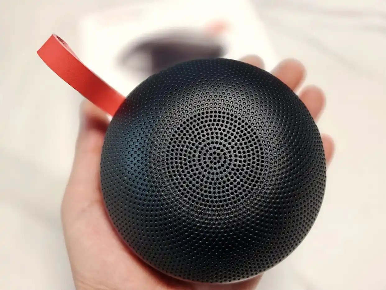 这款蓝牙音箱身材小巧可爱,84*84*68.6mm的轻巧机身,让我可以一手掌握。小体积还能够迸发出大能量,其40mm的内磁喇叭单元,搭载高低音震膜技术,高音和中音的表现还是比较出色的,就是低音稍显不足。