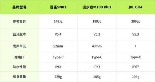 漫步者M100 Plus、西圣SN01、JBL GO4谁才是性价比之王?大家在选购时不能只看品牌,还要综合考量,因为最终效果才能代表这款蓝牙音箱的真正性能,接下来看看这三款蓝牙音箱的核心数据对比。