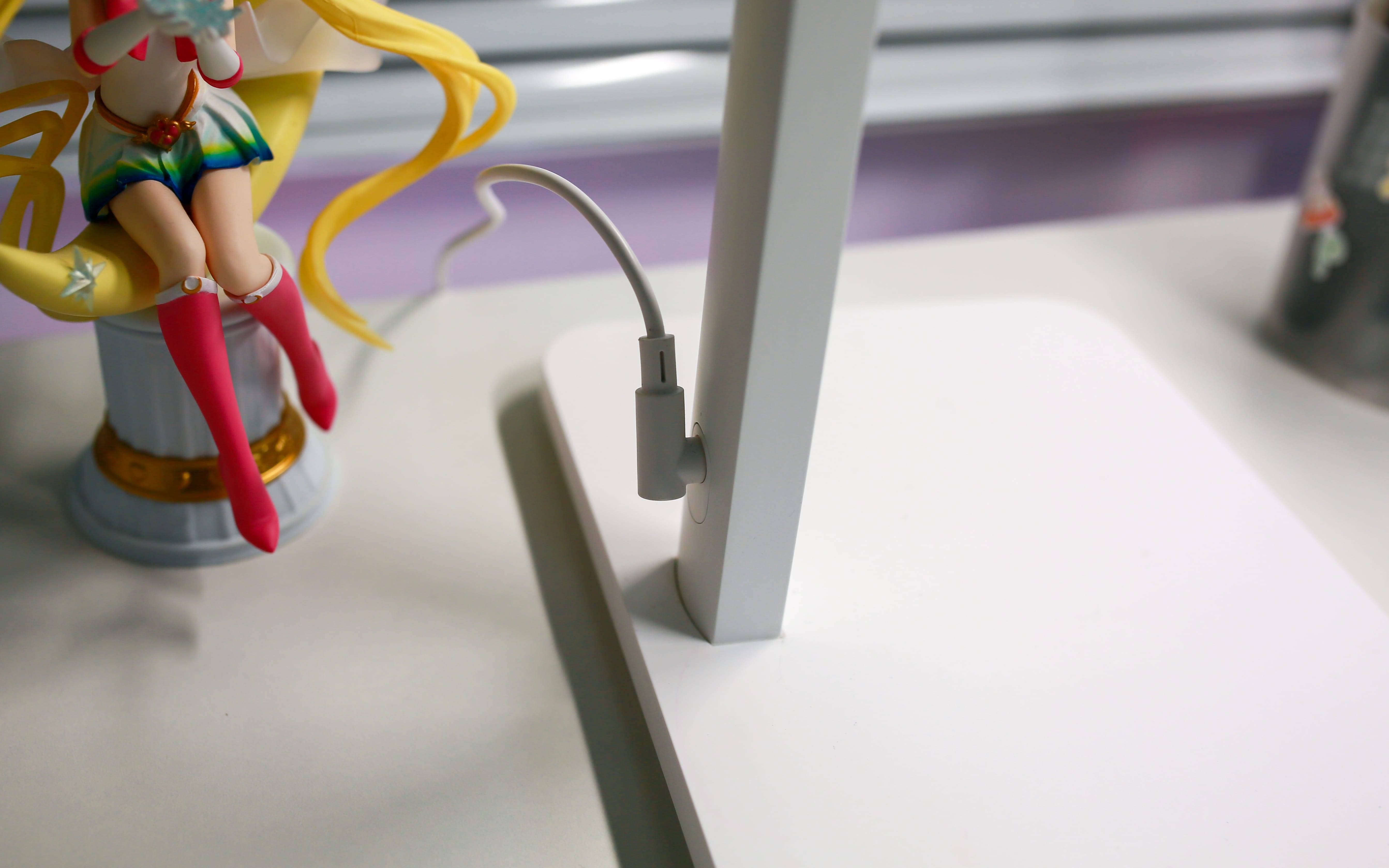 小米桌面学习灯Pro是需要插电的,这个电源线的设计是个亮点,不会额外占用桌面空间。