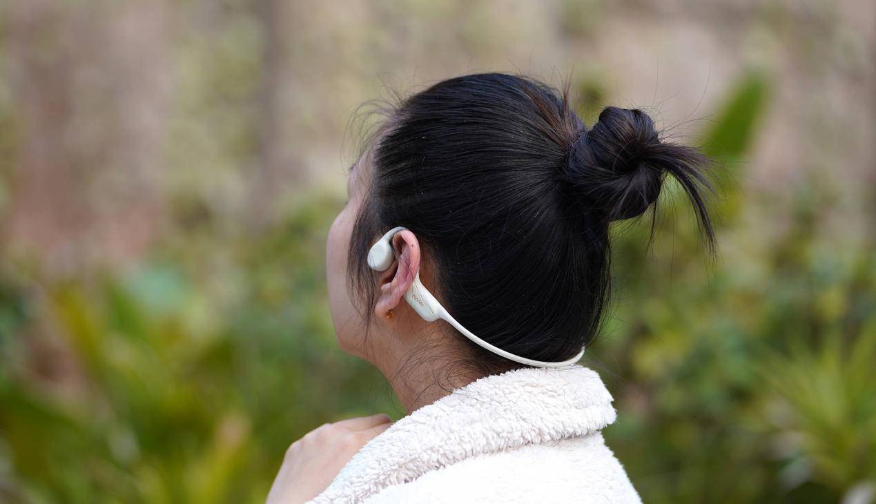 这类耳机更为稳固舒适。其原理是通过振动头骨传递声音,无需直接插入耳道,从而减轻了对耳朵的压力。骨传导耳机通常采用弹性材料制成,能够轻松地贴合头部轮廓,即使是在激烈的游泳活动中也能保持稳定。而且由于密封无孔设计,骨传导的防水性也会比入耳式更好,更加不用担心会进水损坏。