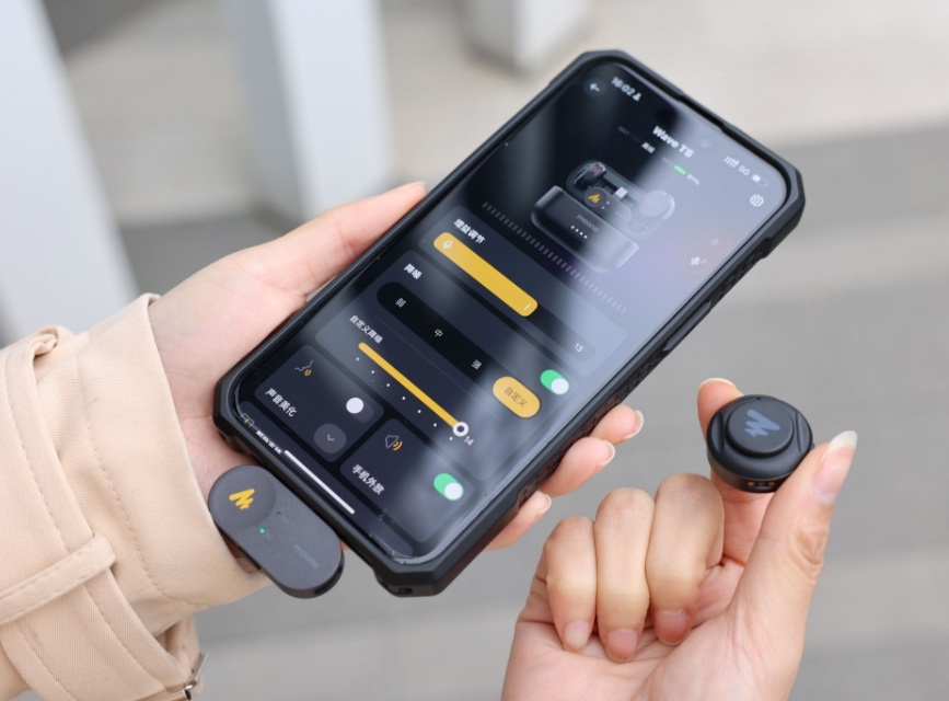 对于户外创作,麦克风的降噪要求更为严格。闪克 Wave T5 采用了独创的“音盾”AI 降噪技术,在户外录制时表现十分突出。这项技术通过 AI 智能识别并精准阻隔噪音源,留下的只是清晰透亮的纯净人声。无论是在嘈杂的街道还是喧嚣的车站,其声音品质都不会受到影响。即使是穿行在人声鼎沸的闹市中,也能轻松获得自己想要的声音。同时,闪克 Wave T5 还具备防风罩技术,即使在户外大风环境中,也能有效减少风声干扰,让每一条音轨都达到理想效果。