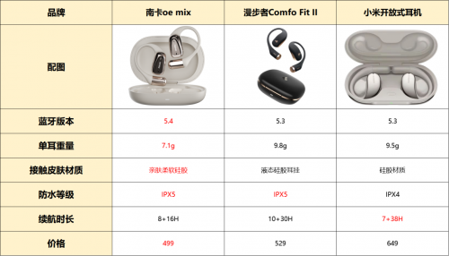 开放式耳机市场越来越火,但面对众多选择,很多人难免纠结:南卡OE MIX、小米开放式耳机、漫步者Comfo Fit II,这三款到底哪款更值得入手?价格相差不大,谁的性价比更高?别急,下面我将通过简单的参数对比和实测分析,看看哪一款更值得入手!