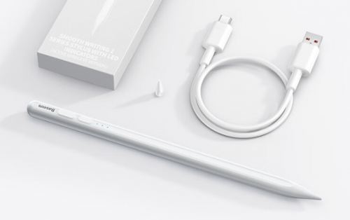 倍-思这款电容笔采用铝合金的笔身,握在手里比较舒适,触感细腻。笔尖使用的是pom材质,书写时有一定的阻尼感,耐磨性也比较强。它有倾斜压感设计,笔触的粗细会随角度的倾斜程度变化,这点对有绘画需求的用户比较友好,它还内置了LED电量指示灯,能实时提醒充电,不过续航略弱一点,只有8.5小时,长时间创作的话,需要中途充电一次。
