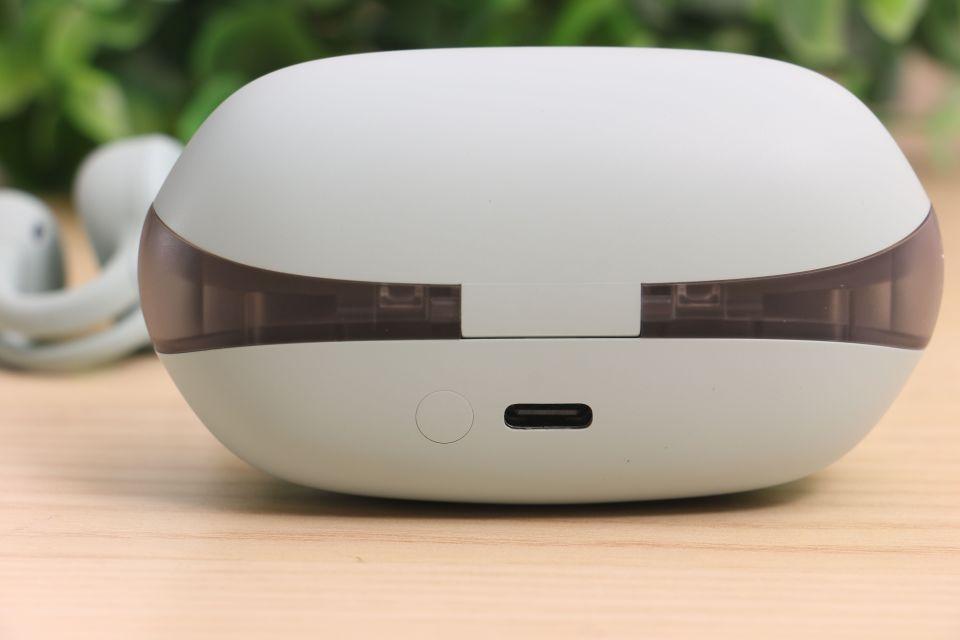 哈氪聆可采用当下主流的Type-C接口充电,但是其特意为充电仓附加了一个控制功能,可以看到在其充电接口旁边有个按键,在做好设置后,这个按键可以作为手机相机的遥控触发按键,这样当我们在外面需要自拍的时候,可以让这个充电仓作为遥控拍摄器,这个功能恐怕在当下无线耳机届是绝无仅有的了。