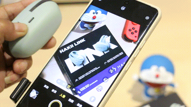 实际使用效果如上,特别需要说明的是,哈氪聆可充电仓遥控拍摄功能是独立功能,无论当前耳机是否在佩戴使用中,都可以使用。
