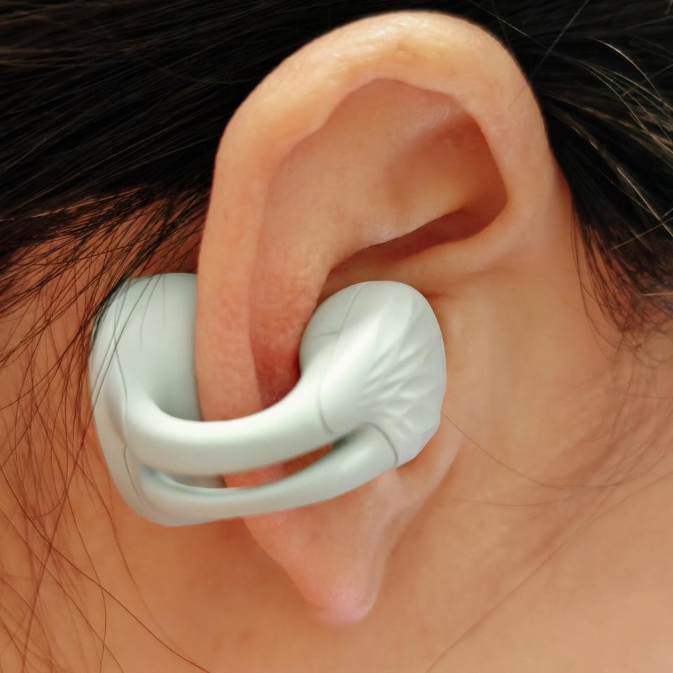 实际佩戴效果如上,可以看到哈氪聆可整体自然贴合非常到位,佩戴的感觉上,完全没有夹耳的不适感,同时外部采用仿生纹理设计,是耳机也是饰品,穿衣百搭。