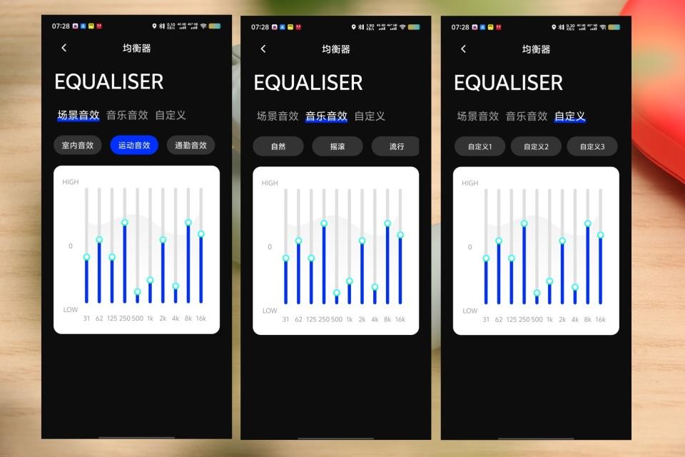 最值得笔者称道的就是这个均衡器了,通过这个均衡器,可以针对不同场景,不同音乐,甚至不同人,定义专属的均衡设定,打造属于自己独一无二的音质。实际使用起来效果非常明显,多重音色选择,满足各种需求。