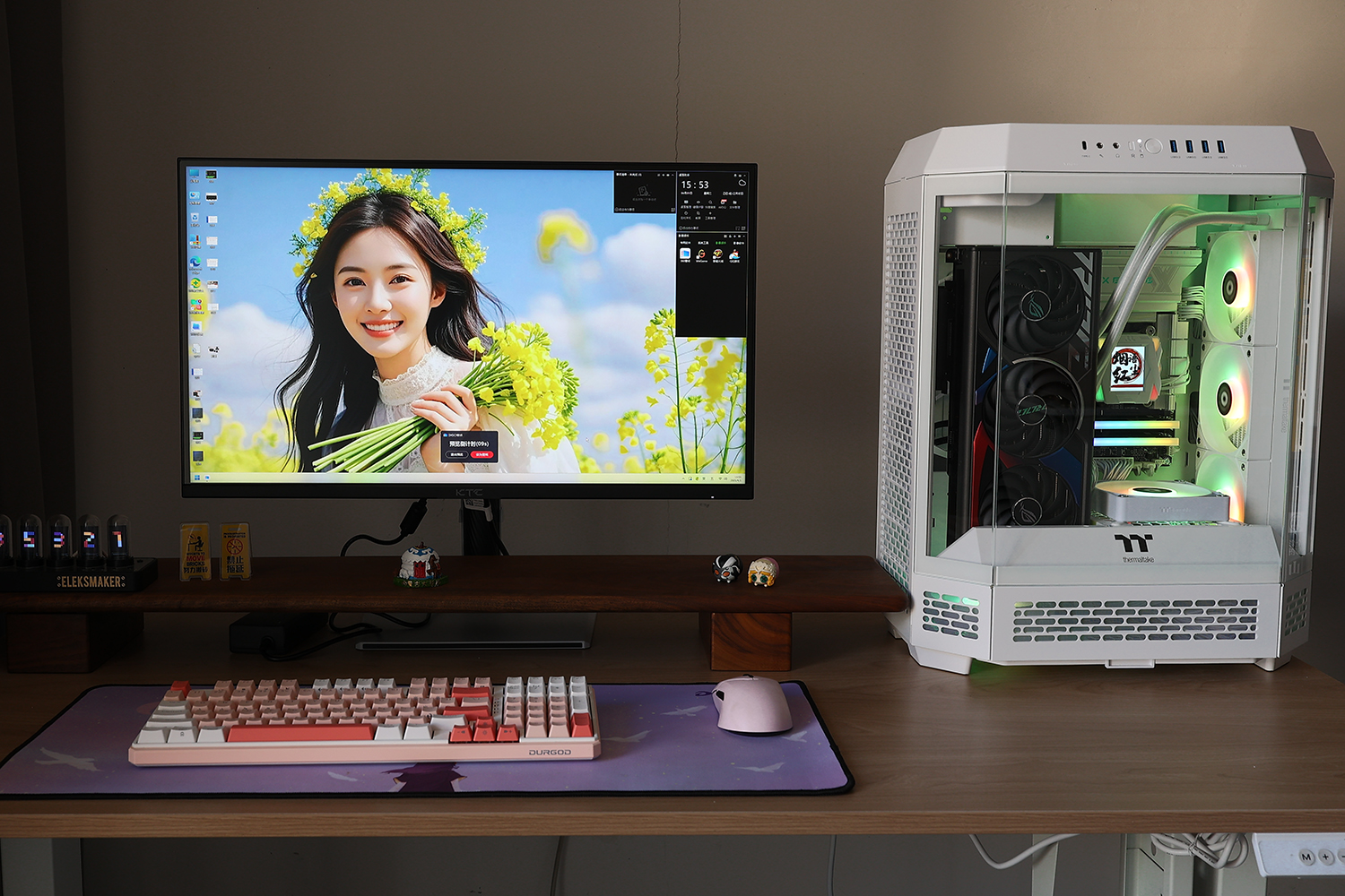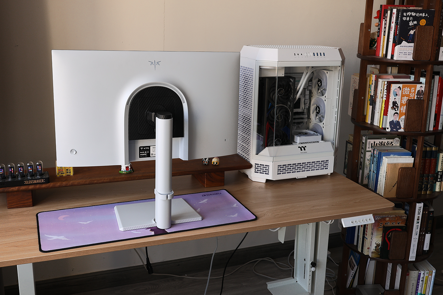 KTC M27T6显示器的背面采用了纯白色设计,和我的白色机箱特别搭配。KTC M27T6显示器的支架上还专门配置了一个束线夹,方便显示器安装时走线,让我们的桌面变得更加干净整洁。